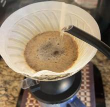 Эрнест Парк (Ernest Park), Марго Янг (Margot Young), Арнольд Дж. Т. М. Матейссен (Arnold J. T. M. Mathijssen), Университет Пенсильвании, США, "Кофе, приготовленный методом «лить поверх»: смешивание струей воды, падающей на гранулированный слой с лавинной динамикой", "Физика жидкостей" (Physics of Fluids), 37(4), апрель 2025.