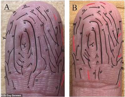 В ходе исследования пальцы испытуемых помещали в воду на 30 минут, делали фотографии, а затем повторяли погружение в тех же условиях по крайней мере через 24 часа. Сравнивая изображения, обнаружили одинаковые узоры приподнятых петель и гребней после обоих погружений.