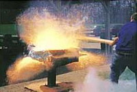 -Процедура разведения огня всегда занимала у нас тридцать - сорок минут. Тогда мы попробовали использовать фен для волос, пылесос и пропановые горелки, - объясняет Гобл. - Затем мы принесли кислородный баллон и подавали кислород по трубке длиной десять футов. Мы жарили всего тридцать секунд. С каждым годом процесс жарки ускорялся, пока время не сократилось до нескольких секунд, когда мы подавали кислород под таким давлением, что сдувало угли.