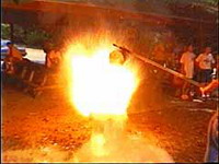 Дело было так. Джордж Гобл - инженер-компьютерщик из Университета Пердью, штат Индиана - установил мировой рекорд по скорости разжигания гриля для барбекю с помощью угля и жидкого кислорода - три секунды. Джордж Гобл и его приятели очень любят барбекю.